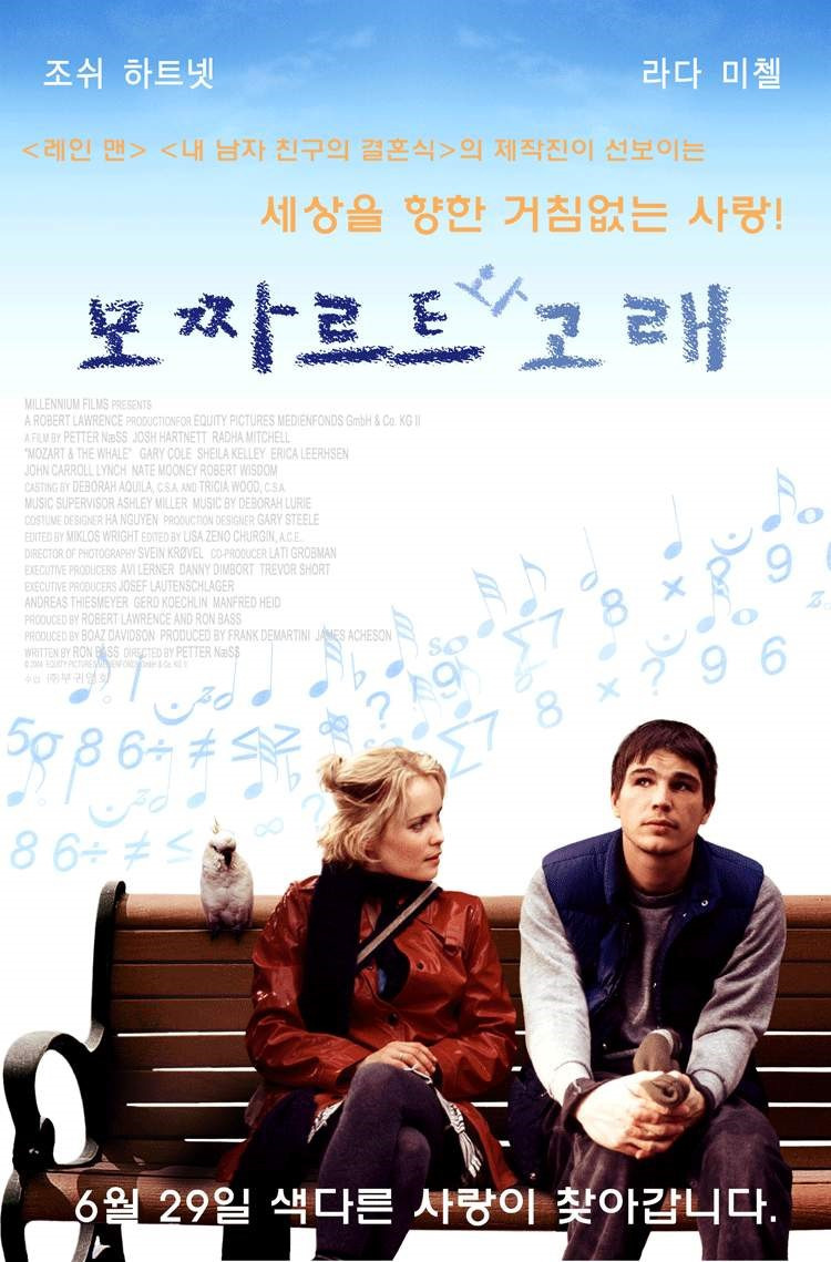 영화 '모짜르트와 고래(Mozart And The Whale)'는 2005년에 개봉한 미국의 멜로, 로맨스, 코미디 그리고 드라마 영화입니다. 감독은 페테르 내스 (Petter Næss)가 맡았으며, 각본은 로널드 바스 (Ronald Bass)가 썼습니다.